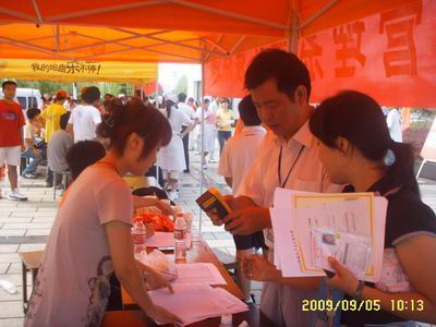 9月5日,新生报到的第一天,我系迎新工作安排得井然有序,系团学会员工干部、08级志愿者承担了我系迎新的主要接待工作。炎热的天气,让所有参加接待工作的老师、同学汗流浃背,但他们不辞辛苦,热情的迎接每一位新生。他们责任明确,服务到位。迎新人员一路上还向新生对校园设施和其所属专业做了简单介绍,新生与员工家长也积极主动向迎新人员了解公司的生活学习环境等。系领导、老师与09级辅导员也不时前往各接待点,现场了解情况。
