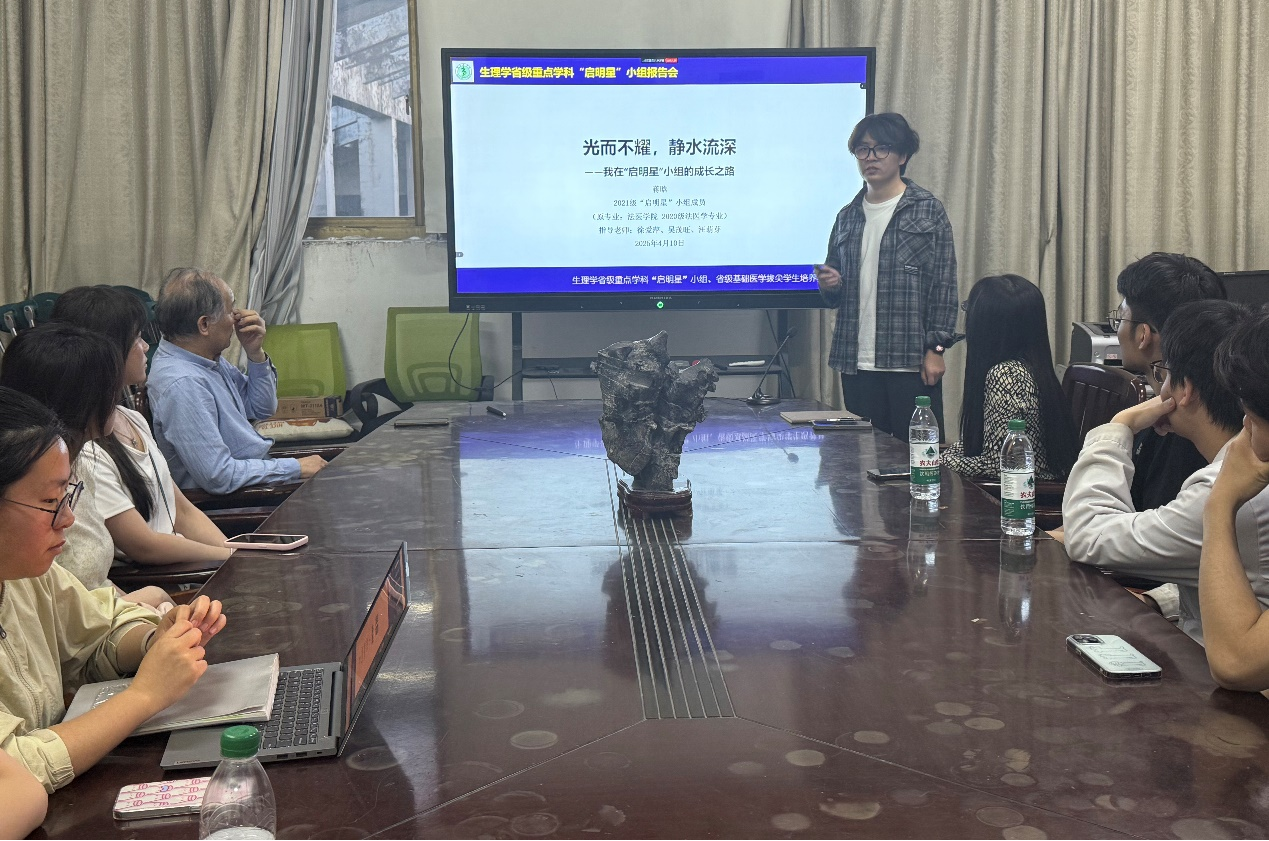 4月10日晚,生理学省级重点学科“启明星”小组在太阳集团tyc151cc生理学与神经生物学教研室举办了创新型人才成长历程分享会。2021级“启明星”小组成员蒋晗以“光而不耀,静水流深——我在‘启明星’小组的成长之路”为主题,分享了自己作为创新型人才的成长历程。会议由汪萌芽教授主持,“启明星”小组指导教师、在校和毕业成员共100余人在线上、线下参加了会议。