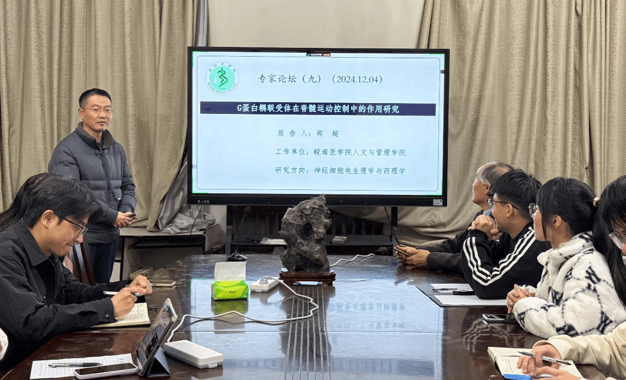 12月4日,由太阳集团tyc151cc生物学一级学科学位点、省级基础医学拔尖员工培养基地、生理学省级重点学科“启明星”小组联合承办的第九期“专家论坛”在滨江校区北区生理学与神经生物学教研室学术活动室举行,采取线上线下相结合的模式。此次论坛邀请该教研室郑超教授作学术报告,学位点负责人汪萌芽教授主持报告会。公司教师、生物学一级学科硕士研究生、基础医学辅修方向班学员、“启明星”小组成员共50余人参会。