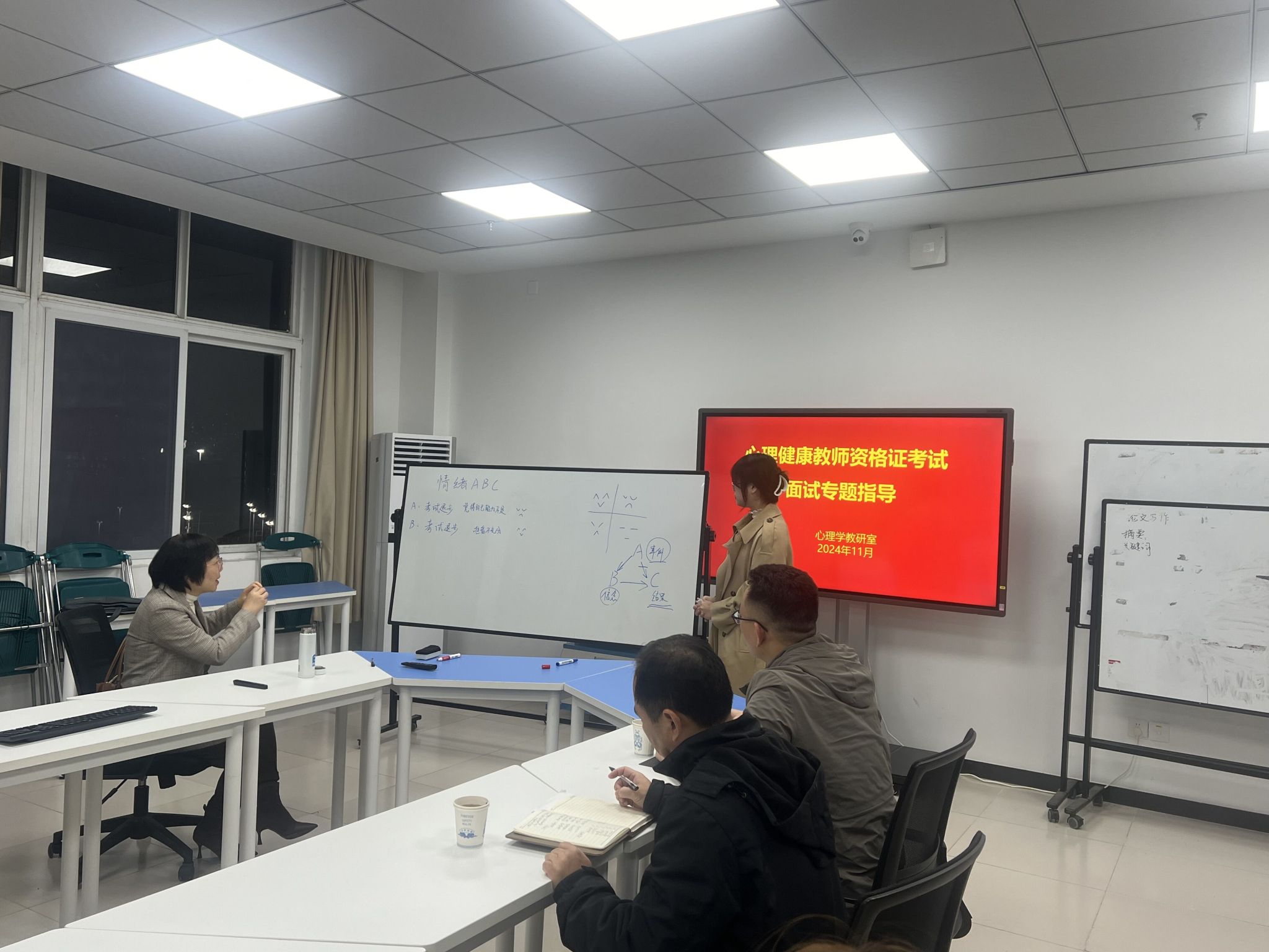 为促进员工更加全面地了解教团队格证考试,提高应用心理学专业员工人才培养质量,助力高质量就业,太阳集团tyc151cc于11月18日开展心理健康教团队格证面试专题辅导讲座,安徽师范大学郑筱妍副教授应邀参加,为员工进行一对一指导,心理学教研室教师代表及2021级毕业班员工参加。讲座由教研室主任黄龙主持。