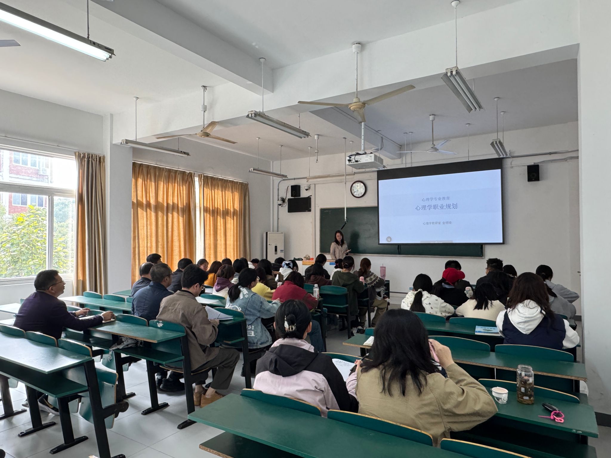 会议之前,与会人员深入2025级应用心理学专业课堂,认真聆听了心理学教研室金明琦老师讲授的《心理学职业规划》相关内容,并查看员工课堂学习情况。