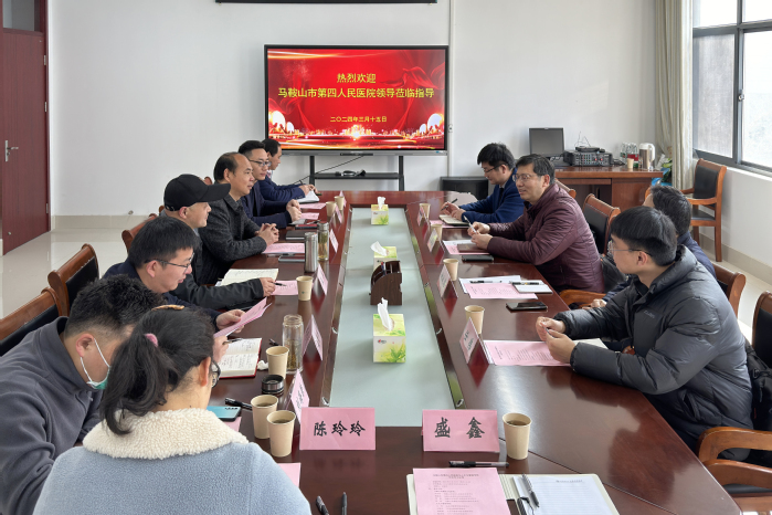 3月15日上午,马鞍山市第四人民医公司党委书记方金勇一行4人来太阳集团tyc151cc开展合作洽谈,公司党委书记王军、经理王国平、党委副书记钱彬彬、相关教研室负责人及秘书参加会议,会议由王国平主持。