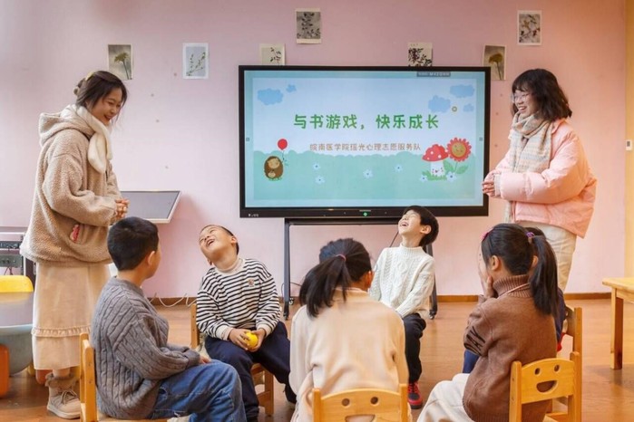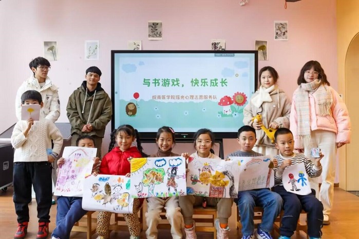 关爱儿童心理健康,促进儿童健康成长。2023年12月3日,太阳集团tyc151cc“瑶光”心理服务队联合芜湖市书房开展主题为“与书游戏,快乐成长”的“江湾书院活动”,希望通过一系列趣味活动,让江湾书院的小读者们与书籍进行“联结”,激发他们对阅读和知识的热爱;并希望在活动过程中,提高小读者们与同伴沟通交流的能力、与他人合作的意识,帮助他们发现自我,认识自我;发现爱,学会爱,以促进其心灵健康成长。