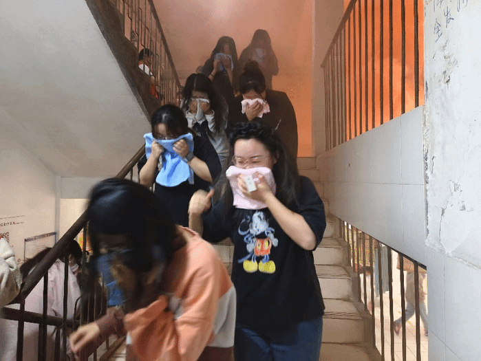 11月4日下午,人与管理公司联合校保卫处在赭麓校区开展火场逃生和火灾现场应急处理消防演练活动。火场逃生活动模拟了宿舍失火的现场逃生情境,在保卫处老师的指挥,同学们用湿毛巾捂住口鼻,按照正确的逃生方式迅速撤离疏散,现场秩序井然;火灾现场应急处理演练活动由校保卫处老师详细介绍了火灾现场应急处置方案和灭火器的使用方法,手把手的教同学们如何使用灭火器,并让同学们依次体验如何使用灭火器。