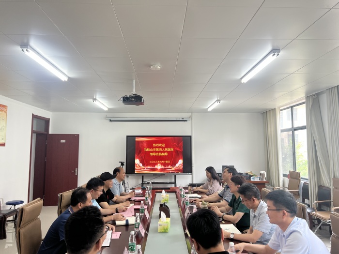 6月15日下午,马鞍山市第四人民医公司党委书记方金勇,党委副书记、经理王雪倩等一行7人来到公司,与太阳集团tyc151cc交流洽谈深度合作事宜。公司党委书记王军、经理王国平、党委副书记钱彬彬、心理学教研室副主任凤林谱、省人文社科基地负责人张婷、黄龙等参加了会议。