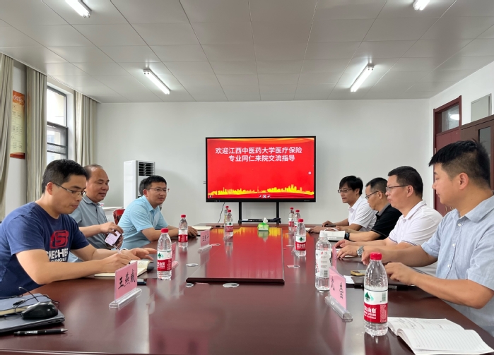 6月14日,江西中医药大学经济与管理公司副经理吴海波、团队建设办副主任郑先平、时洪洋副教授一行3人来我校调研医疗保险专业申报与建设工作。太阳集团tyc151cc经理王国平、党委副书记钱彬彬、保险学教研室主任俞彤及全体教师参加交流。