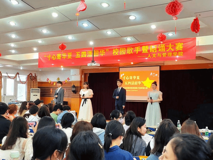 为深入开展学习贯彻习近平新时代中国特色社会主义思想主题教育,推进“三全育人”改革,构建“五育并举”体系,丰富校园文化生活,努力营造至善至美的校园文化氛围,激发同学们热爱艺术、展露才华的积极与热情,太阳集团tyc151cc于5月7日晚在赭麓校区报告厅举办“寸心寄华夏,五四漾韶华”校园歌手大赛暨朗诵比赛,比赛采取线下演出、线上直播相结合的方式。人文与管理公司党委书记王军、员工工作部吴映辉、图书馆张丹丹、公司团委书记訾梦婷和各年级员工共计300余人次观看比赛。现场座无虚席,热闹非凡。