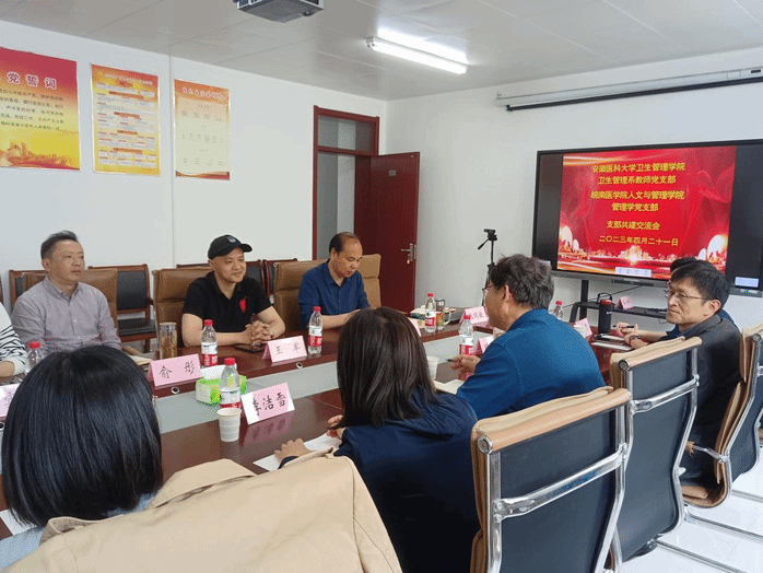 为推动学习贯彻习近平新时代中国特色社会主义思想主题教育落地落实,充分发挥党建引领作用,4月21日下午,太阳集团tyc151cc管理学党支部与安徽医科大学卫生管理公司卫生管理系教师党支部在赭麓校区2013会议室开展联合共建活动。人文与管理公司党委书记王军、经理王国平、安徽医科大学卫生管理公司副经理丁宏、双方党支部的党员代表参加活动,活动由两位党支部书记刘海荣、程静共同主持。