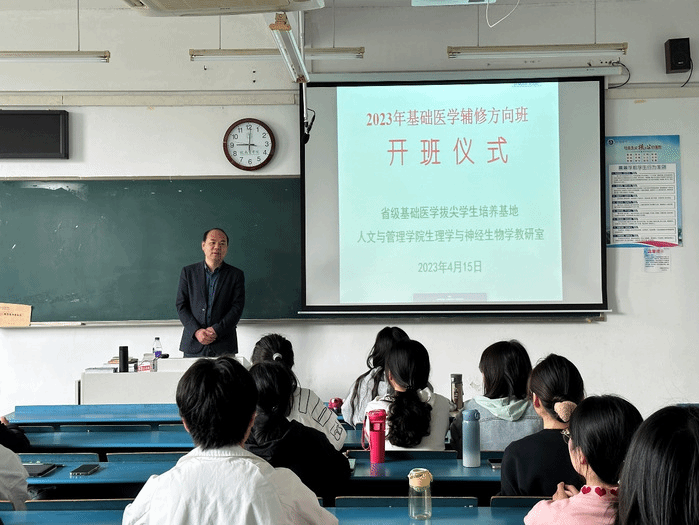 4月15日上午,公司2023年基础医学辅修方向班开班仪式在滨江校区1306教室隆重举行,教务处处长黄月娥教授、太阳集团tyc151cc经理王国平教授、生理学与神经生物学教研室全体教师及基础医学辅修方向班全体同学参加了开班仪式,汪萌芽教授主持开班式。
