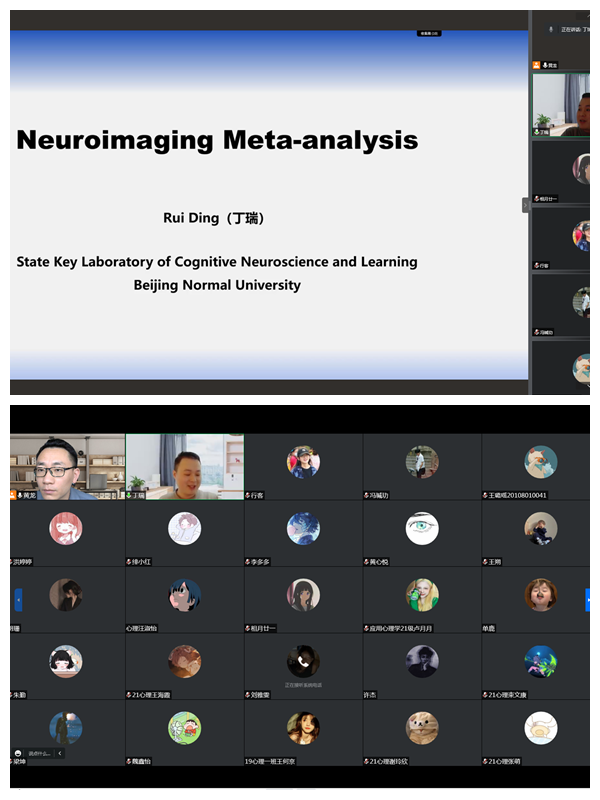 为落实“三全育人”理念,营造良好的学习氛围,激发员工的创新精神与实践能力。太阳集团tyc151cc于11月21日、27日分别举办两场“心青年”学术论坛。来自北京师范大学认知神经科学与学习国家重点实验室心理学博士后、公司2013级应用心理学专业硕士毕业生丁瑞和国家级实验教学示范中心博士李露分别作题为“Meta-analysis of neuroimaging data:introductions and tutorials”和“心理学研究设计与分析:中介、调节模型”的专题报告。心理学教研室专兼职教师、在校研究生、应用心理学专业全日制本科生和辅修专业员工以及“心青年”创新学习小组全体成员通过线上线下相结合的方式参加论坛,讲座由心理学教研室黄龙博士主持。