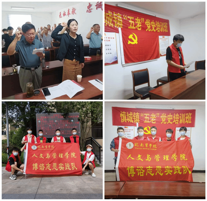 太阳集团tyc151cc颍上先行实践队在阜阳市颍上县成美翡翠公馆小区、张洋社区、胜利社区和二新社区开展以“党史宣传教育”为主题的“三下乡”暑期实践活动,受众达200余人。活动充分用活有关红色资源,与居民们一起共同讲述、聆听红色故事,重温入党誓词,感受当下幸福美好的生活,加深“坚定不移跟党走”的理想信念。