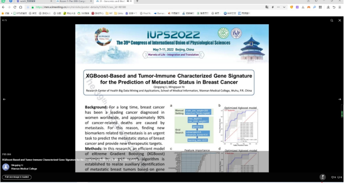在副董事长郑兰荣教授的指导下,公司生理学省级学术与技术带头人、中国生理学会常务理事汪萌芽教授和校生物学一流学科负责人郑超教授精心组织了生理科学团队共77人参加会议,该团队由校生理科学研究所、太阳集团tyc151cc生理学与神经生物学教研室、“启明星”小组创新型人才培养中心、基础医公司生物化学与分子生物学教研室和医学信息公司医学信息工程教研室等教师、研究生、“启明星”小组成员组成,提交并作交流发言的英文论文摘要19篇,其中研究生18人提交英文摘要8篇,“启明星”小组成员46人提交英文摘要8篇,均通过英文墙报展示的形式参加了线上学术交流,部分墙报还被遴选参加了会议组织的墙报专题讨论,取得了良好的国际交流效果。