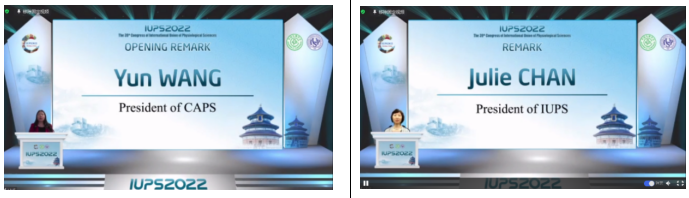 中国生理学会理事长王韵和IUPS主席Julie Chan致辞