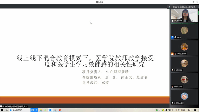 汪萌芽对新成员们提出了行为规范、组织设置、学术思想、创新训练、安全保障等方面详细要求。随后,作为对部分2021年“启明星”小组成员创新能力训练情况的检查,组织了7名成员进行2021年度创新能力训练项目的开题报告。7名项目负责人遵循相对独立设计的原则,按照“立项基础、项目内容、技术路线、预期成果和进度安排”等进行汇报,指导教师以及小组成员线上进行了热烈讨论,针对项目如何进一步完善设计和开展实施提出了诸多有益建议,报告者再进行深入答辩,从而为项目的顺利实施奠定了坚实基础。同时这对于旁听的新成员来说也是一次非常有益的学术训练,开启了他们创新能力训练的序幕。汪萌芽最后在总结中,鼓励 “启明星” 小组成员要珍惜机遇、把握时间条件,充分思考和抓紧推动所负责或参与项目的进一步设计和实施。大家积极回应表态,表示将在指导教师的悉心指导下,认真、严谨、有序地开展项目研究,努力获取高质量的研究成果。