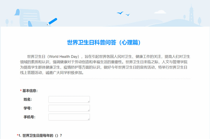 4月15日至4月17日,公司开展“疫起防护卫生,携手应对新冠”世界卫生日线上答题活动,普及健康卫生知识,增强疫情防护意识,呼吁同学们携手佑护生命健康,共同构建生命健康共同体。