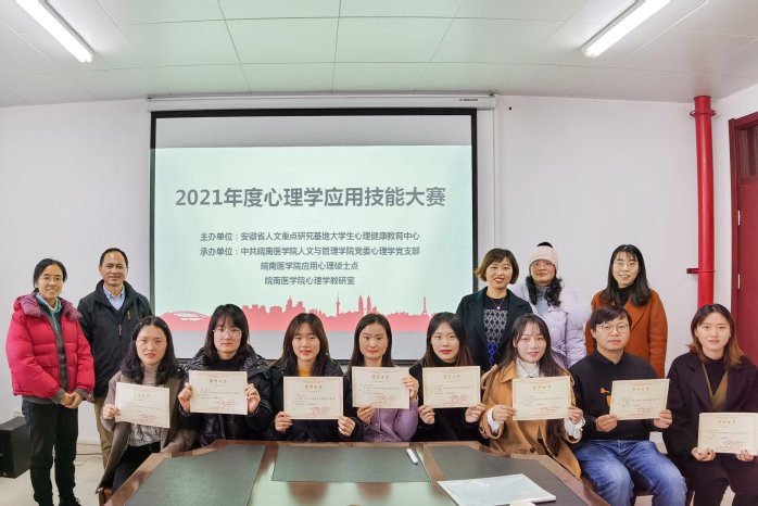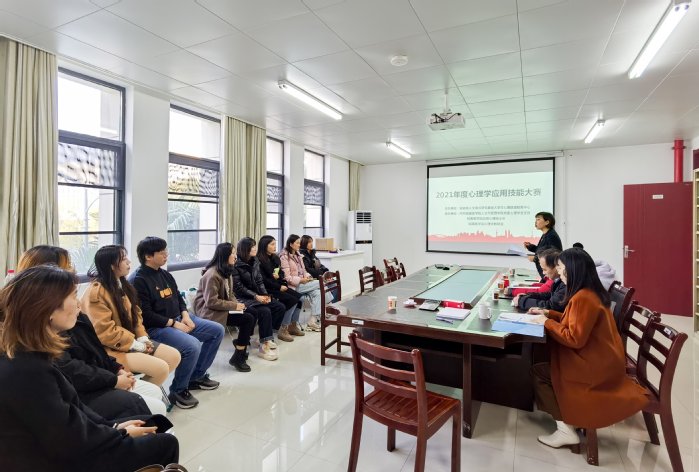 12月10日下午,太阳集团tyc151cc人文社科重点研究基地老员工心理健康教育研究中心联合心理学党支部、应用心理硕士点及心理学教研室在人文基地办公室举行2021年度心理学应用技能大赛。人文基地常务副主任张婷、心理学教研室副主任凤林谱、李秀教授、何苗苗老师、人文基地秘书王欣担任评委。