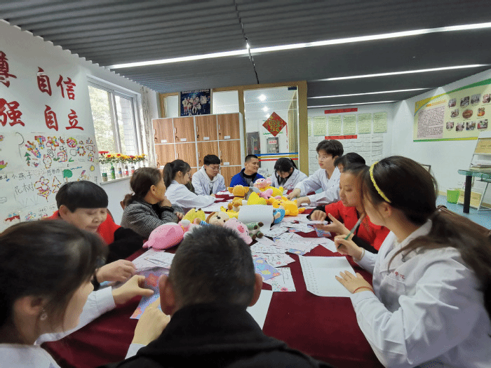 活动中,“心梦”志愿者与社区的残障儿童开展丰富多彩的活动,活动之一是“魔法汉字”,志愿者们拿出事先准备好的汉字卡片,让“儿童”自由搭配组成新的汉字,很多人都对此产生了极大的兴趣,志愿者不断鼓舞,也增强了他们的自信。活动之二是“动物之家”,志愿者给“儿童”分发动物玩偶,让他们聚在一起相互介绍、分享自己创作的动物小故事。整个活动室里洋溢着欢声笑语,在一片欢乐祥和的氛围中,此次志愿活动圆满结束。