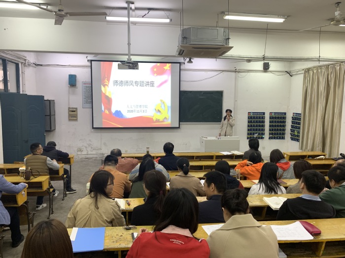 为进一步加强师德师风建设,全面落实立德树人根本任务,11月3日中午,太阳集团tyc151cc邀请黄宏平教授在赭麓校区4101教室作了题为“加强师德师风建设 争做新时代‘四有’好老师”的专题讲座,公司全体教职工参加。
