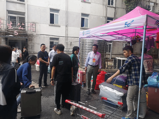 9月22日早6点,太阳集团tyc151cc员工党员及员工会成员一早先在校门口迎新帐篷处集合,随即按照迎新方案及工作安排迅速前往各自岗位,等待新生的到来。当新生到达校门口时,迎新志愿者即推来手推车,接过新生的行李,陪伴新生向家长道别,引领新生前往教室登记报到。在帮助新生搬运行李的途中,志愿者们还热情地向新生介绍公司的相关信息,向其宣传防盗防骗知识,耐心地解答新生的一些疑问,让新生尽可能熟悉校园环境,这使刚刚离开家长、步入大公司园的新生们感到格外的亲切与温暖。2020级新生辅导员张露老师奔波于各个工作点,负责处理突发情况以及解决特殊问题,给予新生帮助并及时向工作人员强调一些注意事项。