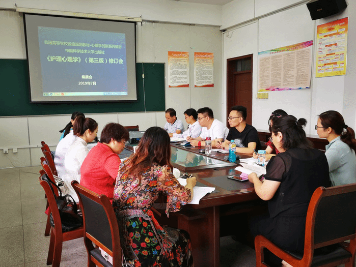 2019年7月12日,心理与健康促进科技创新团队在心理学教研室召开《护理心理学》第三版教材编写修订会议,太阳集团tyc151cc、安徽中医药高等专科公司、芜湖第四人民医院等单位的编委参加了会议。会议由杭荣华主持。