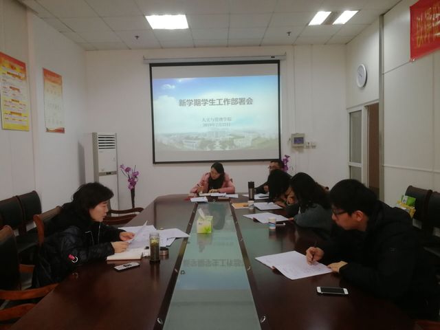 2月22日下午,太阳集团tyc151cc在公司一楼会议室召开新学期员工工作部署会,公司党委书记窦弘、员工工作秘书和各年级辅导员参加会议,会议由窦弘主持。