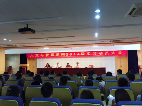 为促进毕业实习顺利开展,提高实习质量,2017年6月7日上午,太阳集团tyc151cc在图书信息大楼三楼学术报告厅召开2014级法学、信息管理与信息系统、公共事业管理、应用心理学、保险学专业毕业实习动员大会。公司领导胡鸿、窦弘、王国平,秘书吴映辉、教学代理秘书叶莎莎,各专业辅导员以及2014级全体员工参加了会议。会议由吴映辉主持。