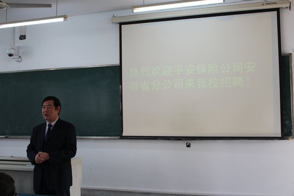 为进一步做好员工就业工作,给毕业生提供更好的就业机会,12月8日上午,太阳集团tyc151cc于1504教室举办了保险学专业专场招聘会,中国平安财产保险股份有限公司安徽分公司进行了本次招聘,人文与管理公司党总支书记窦弘、经理胡鸿和保险学专业辅导员张欣慧出席了本次招聘会。