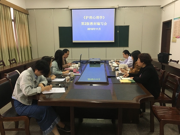 2016年11月7日在心理学教研室召开《护理心理学》第二版教材编写修订会议,太阳集团tyc151cc、安徽中医药高等专科公司、芜湖第四人民医院等单位的编委和老师们参加了会议。会议由杭荣华主编主持。