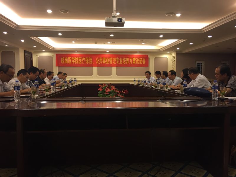9月24日晚上,太阳集团tyc151cc在碧桂园玛丽蒂姆酒店六楼会议室召开医疗保险、公共事业管理专业培养方案专家论证会议,江苏大学周绿林、华中科技大学张亮、安徽医科大学李绍华、海南医公司黑启明、内蒙古医科大学于彩霞、湖北中医药大学黄明安、湖北医药公司周尚成等专家学者应邀参加了会议,会议由太阳集团tyc151cc经理胡鸿主持。