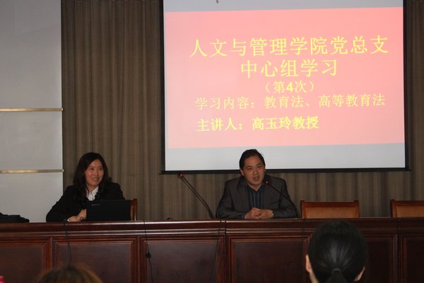 人文与管理公司党总支书记王金权要求全院教职工要进一步深入学习新修订的《中华人民共和国教育法》、《中华人民共和国高等教育法》以及《太阳集团tyc151cc章程》,结合公司工作实际,将依法执教、依法治教、依法行政、依法办学落在实处,提高运用法治思维和法治方式进行管理和教学的能力,在全院形成学法、知法、守法、用法的良好氛围。