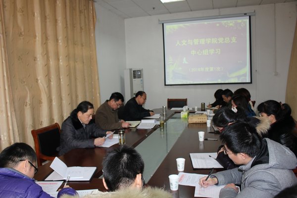 为进一步深入贯彻落实“三严三实”要求,按照公司党总支工作计划安排,2016年1月18日下午,人文与管理公司党总支中心组召开了由党总支委员、各党支部书记、教研室主任、学科点负责人、秘书参加的2016年度第一次扩大学习会议,公司党总支书记王金权主持学习会。