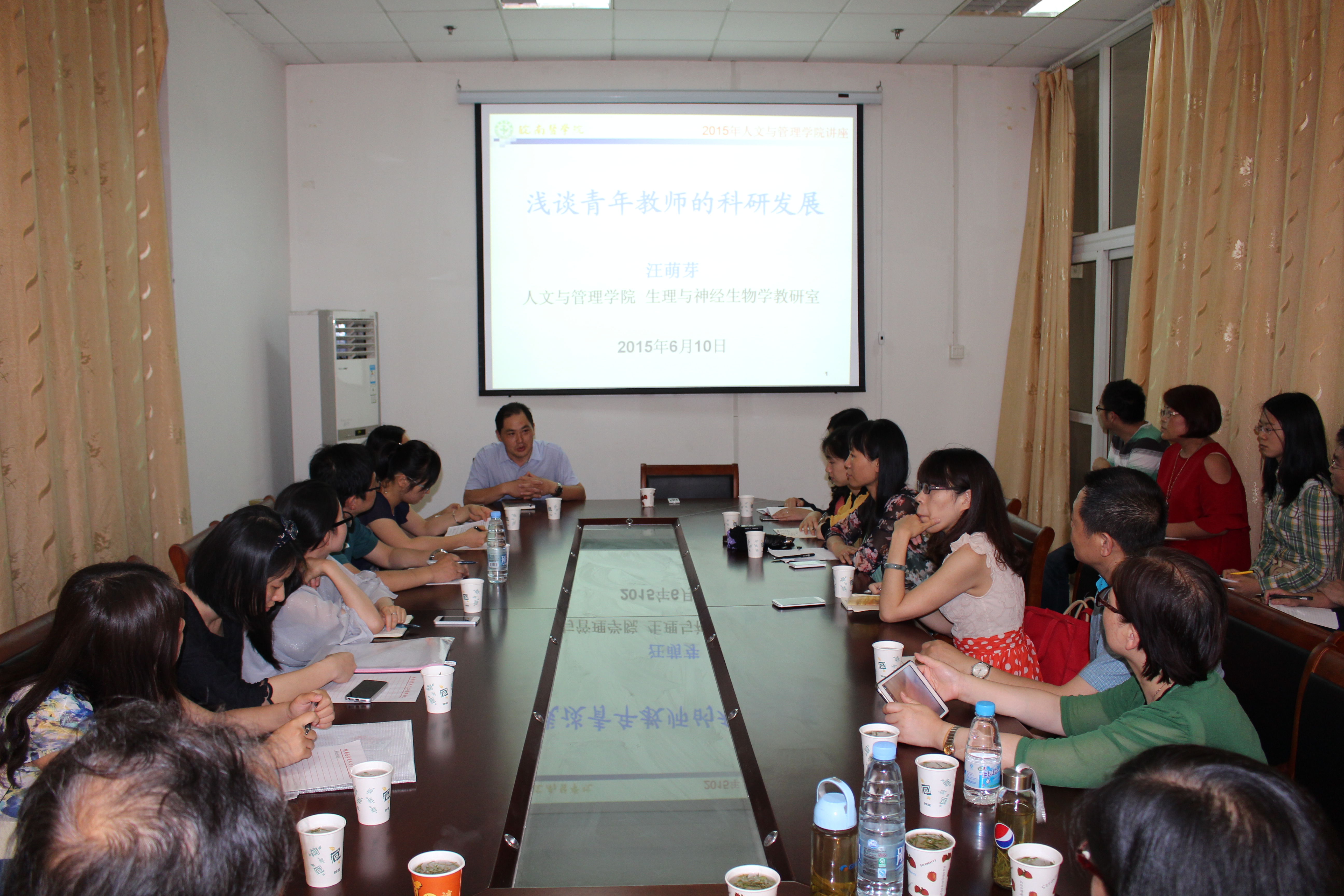 汪教授以医学模式转变为切入点,结合自己三十多年的科研工作经历和生理学与神经生物学科的发展历程,围绕着科研理念、思维、设计等方面,深入浅出地阐述了青年教师如何结合自身的学科特点凝练自己的科学研究方向。汪教授指出科学研究不可能一蹴而就,需要长期积累,只有经过长期的科学研究实践,才能由量变到质变,最终实现自己的人生梦想;科学研究需要合作,只有合作,才能共羸,青年教师要快速融入团队、融入学科,紧贴专业、团队建设的客观需要,结合自身的特长,寻找结合点,通过学科交叉、综合创建研究特色,并在专业、学科发展的平台上成就个人的人生理想。汪教授的讲座以全新的视角、精辟的见解,给与会教师留下了深刻的启发。