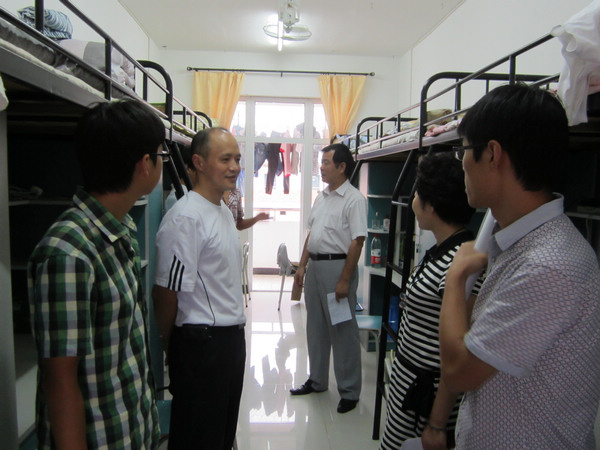 9月5日下午,人文与管理系党总支书记阮笑芳、主任胡鸿、副主任王军和新生辅导员深入员工宿舍,看望2011级新生,给他们捎去一片酽酽的温暖和关怀。