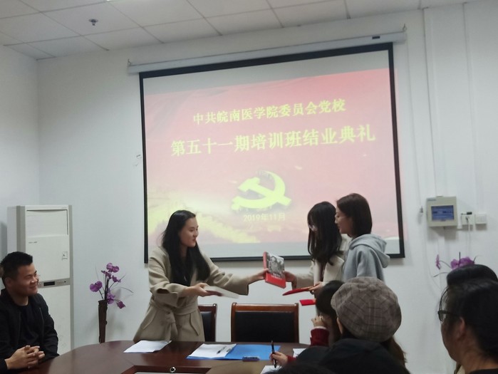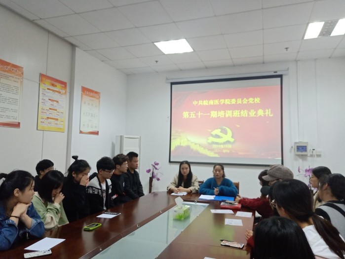 2019年11月8日晚,中共太阳集团tyc151cc委员会党校第五十一期积极分子培训班结业典礼在太阳集团tyc151cc会议室成功举办。本次结业典礼由第五十一期党校班主任成铭以及员工第一党支部书记訾梦婷主持,17、18级入党积极分子参加。