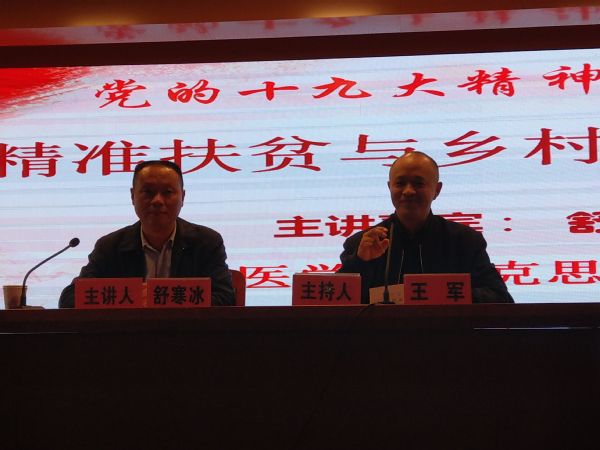 为了学习贯彻党的十九大精神,扎实推进党的十九大精神进校园,11月23日上午,马克思主义公司邀请安徽省作家协会会员、《岳西周刊》《岳西网》总编辑、著名新闻人舒寒冰老师在图书馆三楼报告厅为太阳集团tyc151cc师生作题为“精准扶贫与乡村振兴战略”的报告。太阳集团tyc151cc2017级全体员工积极参加,报告会由马克思主义公司经理王军主持。