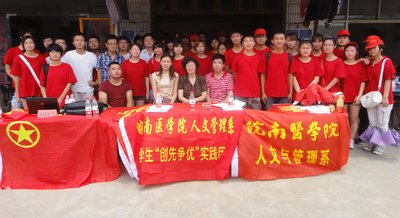 | 2011年7月4日,人文与管理系老员工暑期社会实践团队响应校团委“创先争优”的号召,在系党总支副书记刘华、系团委书记吴映辉、2009级辅导员卞呈祥和2010级辅导员晋崇政的带领下,前往市三山区开展以“永远跟党走,青春献祖国”为主题的暑期义务支医、支农、支教“三下乡”活动,在当地引起了广泛关注和强烈反响。
