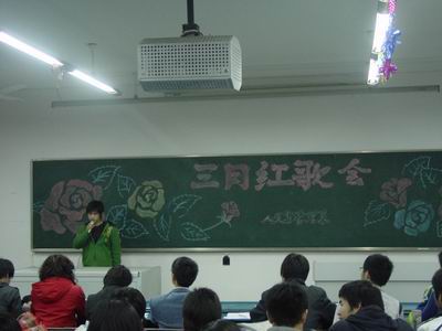 新春三月,万物复苏。3月23日晚,08级人文与管理系在西503教室举行了一场别开生面的红歌比赛,我系同学积极参与,宋老师,徐老师以及系辅导员亲临现场。