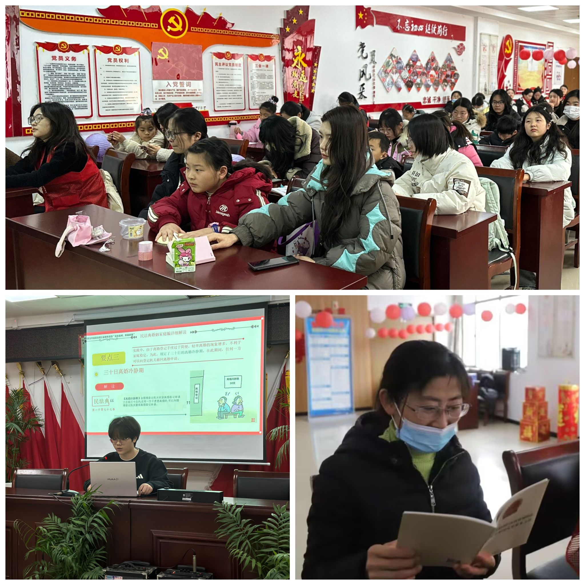 活动现场,志愿者围绕民法典婚姻家庭编中新实施的内容展开解析,从婚姻关系的成立与解除,到夫妻共同财产的界定与分割,从子女抚养教育的责任与义务,到家庭成员间的权益保护,结合典型案例进行深入浅出的讲解,帮助居民理解法律条款的实际应用。现场还设置了 “你问我答”互动环节,解答居民的法律疑问,切实将法律知识转化为解决实际问题的工具。活动中,公司团委充分发挥“第二课堂”育人功能,组织20余名员工志愿者参与筹备宣讲课件、设计互动环节等工作。活动受到了社区的高度赞许,社区负责人评价:“高校学子的专业讲解为基层法治建设注入青春力量,期待更多合作!”
