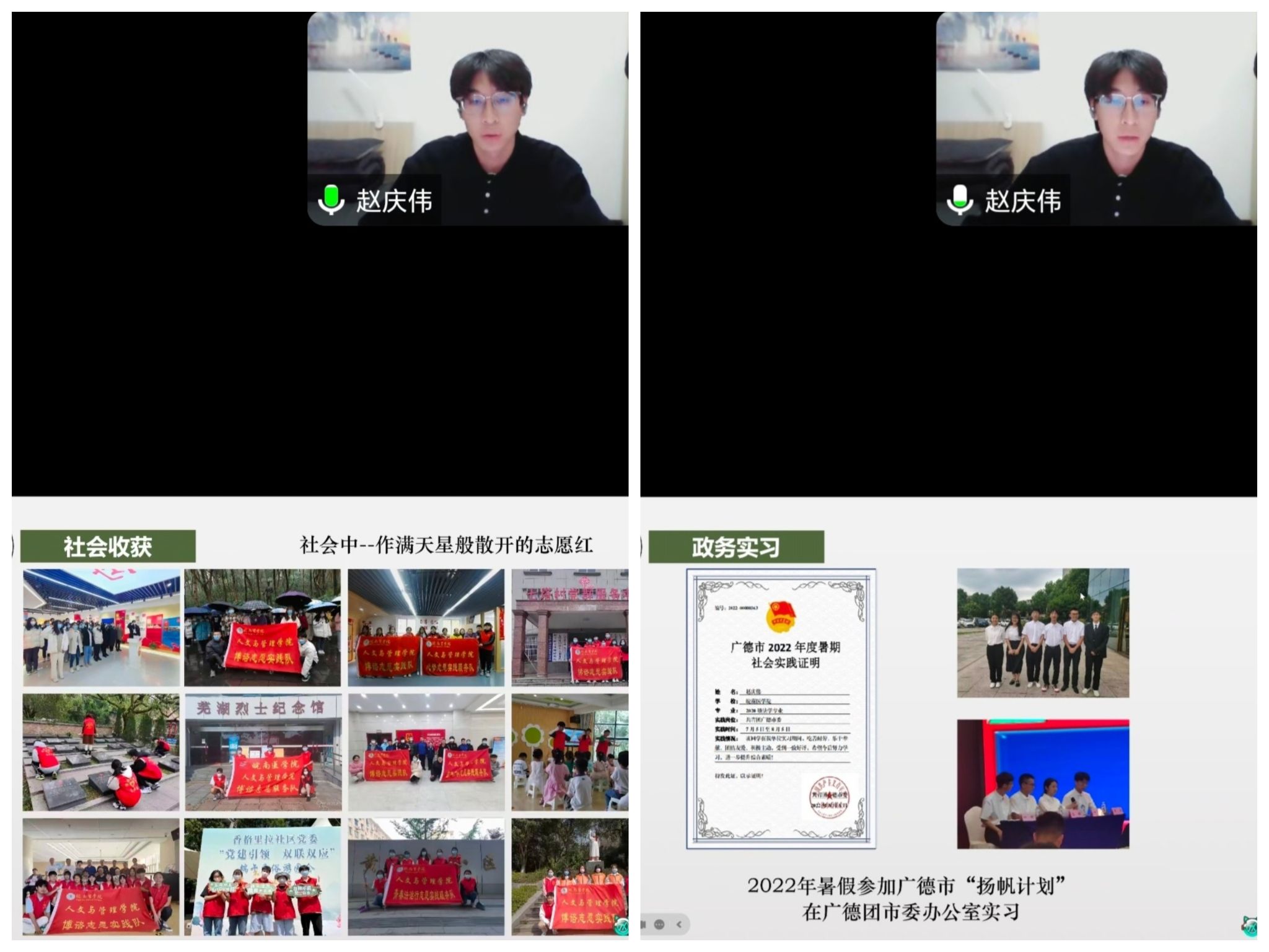志之所向,心之所在。在校期间,赵庆伟积极参与各类志愿活动,曾担任校青年志愿者服务中心副主任和太阳集团tyc151cc博谘实践队队长。赵庆伟讲述了自己的志愿服务经历,分享了在此过程中的感悟与心得,借此鼓励同学们在精进专业知识的同时,通过实践探索来锻炼个人的综合能力。