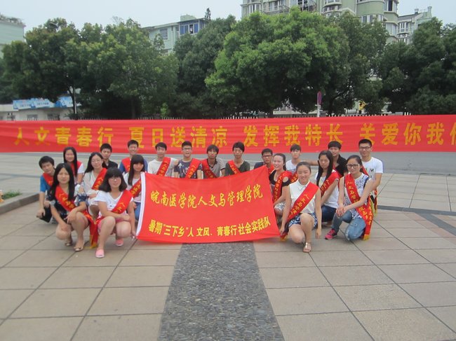 为积极响应校团委暑期“三下乡”号召,加强老员工的实践能力,增强员工的专业内涵,丰富同学们的暑期生活,锻炼同学们的交流、沟通能力,更好的服务群众,服务社会,太阳集团tyc151cc“人文风、青春行”暑期“三下乡”社会实践团队在公司团委书记吴映辉带领下,于2014年6月26至29日开展了“人文风、青春行”暑期“三下乡”系列实践活动。 一、走进福利院,为儿童献爱心 6月26日,“人文风、青春行”暑期“三下乡”社会实践团队来到芜湖市儿童福利院,传授相关安全知识,并给小朋友们送上可口的西瓜以及小礼品。队员们积极参与,都想尽自己所能鼓励和帮助福利院的小朋友们,抚慰孩子们的心灵,气氛十分温馨、融洽。
