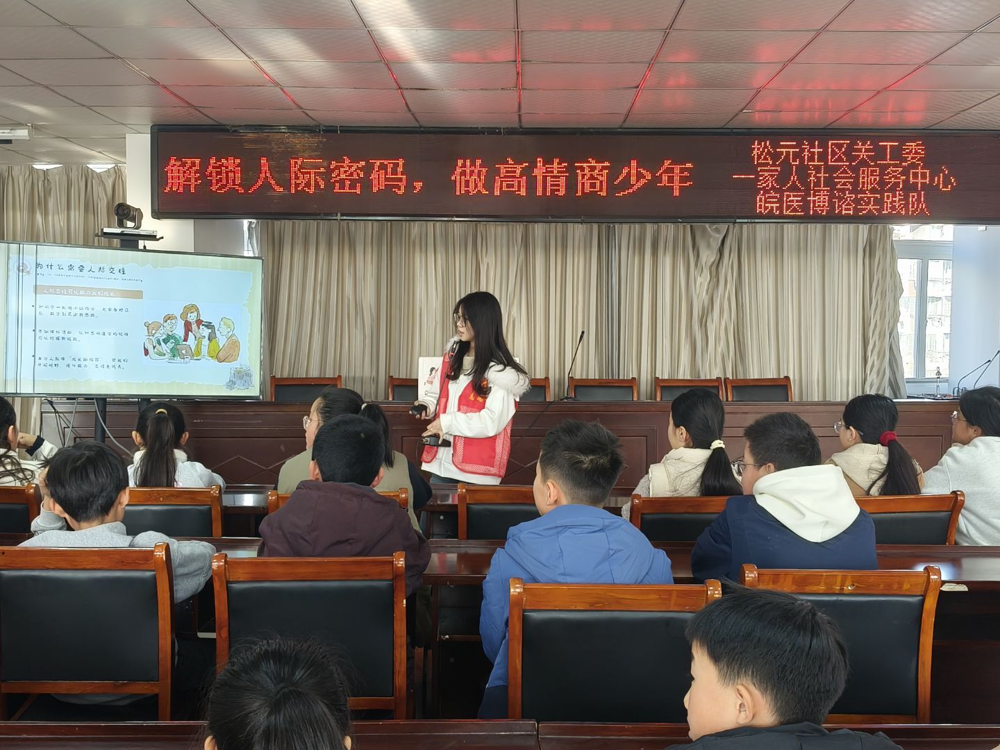 为助力社区儿童深刻领会人际交往的重要意义,熟练掌握基础沟通技巧,11月29日,太阳集团tyc151cc博谘实践队前往弋江区松元社区,面向社区儿童开展了以“人际关系”为主题的心理知识宣讲活动。
