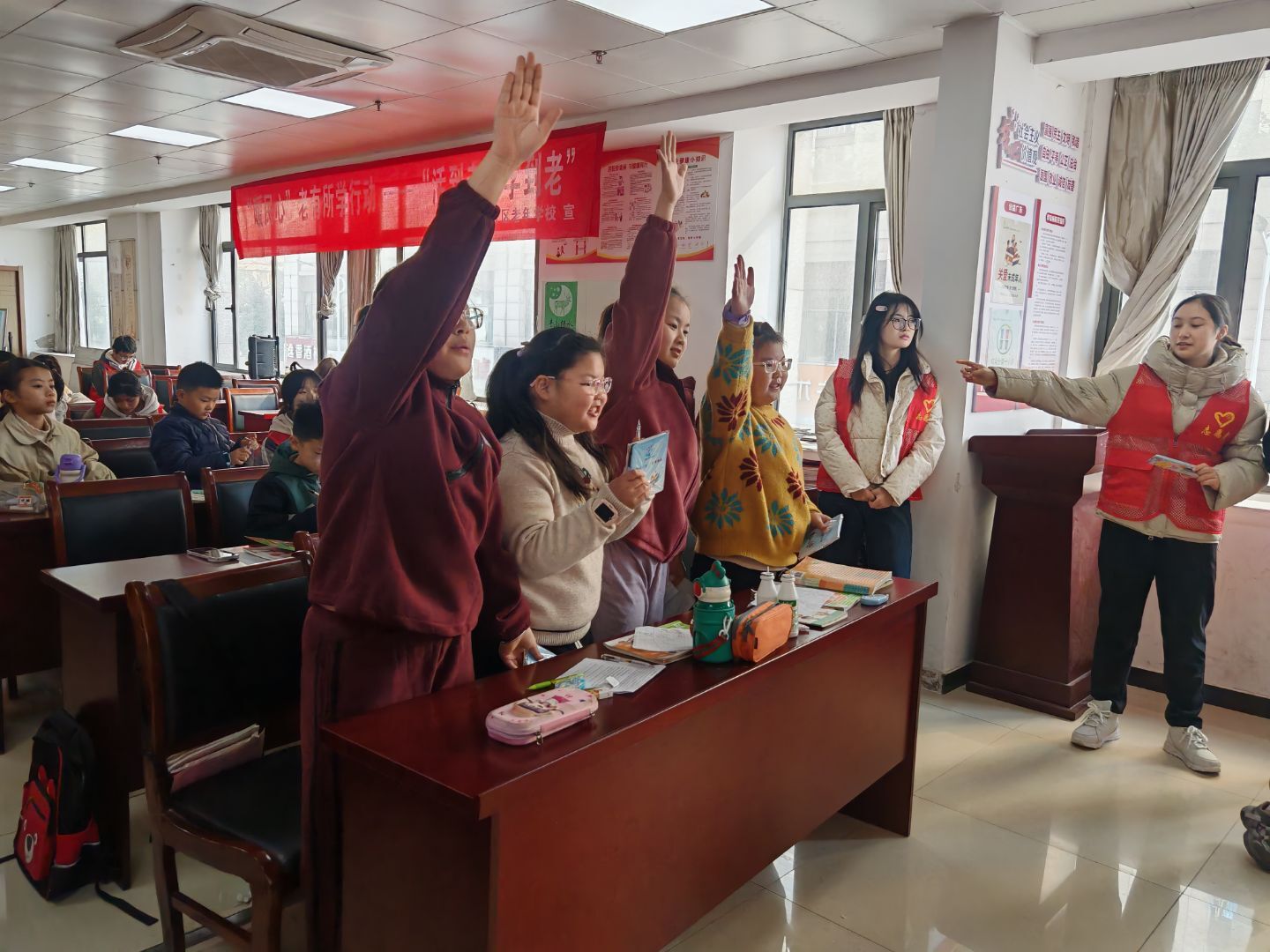 活动现场,博谘实践队成员运用童趣化的PPT,借助卡通形象和简单案例,为小朋友们讲解“良好接触”与“不良接触”的差异,清晰阐述危险场景的识别方法及求助途径。宣讲结束后,知识竞答环节气氛热烈,小朋友们积极举手抢答,在互动氛围中巩固了自我保护知识。