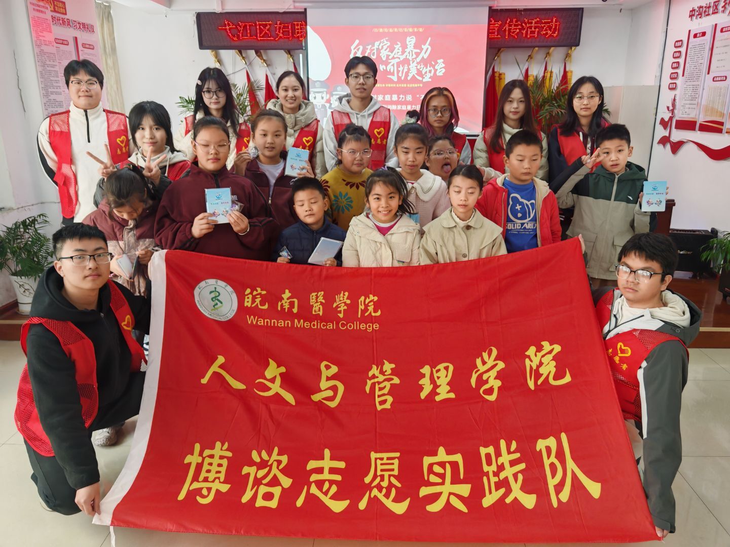 11月22日上午,为传播反对家庭暴力的理念,助力儿童安全成长,芜湖市弋江区中沟社区新时代文明实践站与太阳集团tyc151cc博谘实践队合作,于社区活动中心开展了一场家庭反暴力主题宣传活动。
