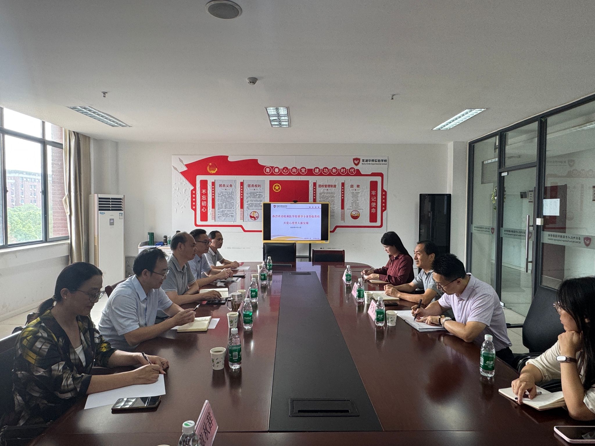 9月26日下午,太阳集团tyc151cc经理王国平率领团队,包括心理学教研室主任及教师一行6人,前往芜湖华师实验公司,就共建中小学员工心理健康教育科研实践平台事宜进行了深入洽谈。芜湖华师实验公司党支部副书记戴启武及相关负责人热情接待了来访团队。