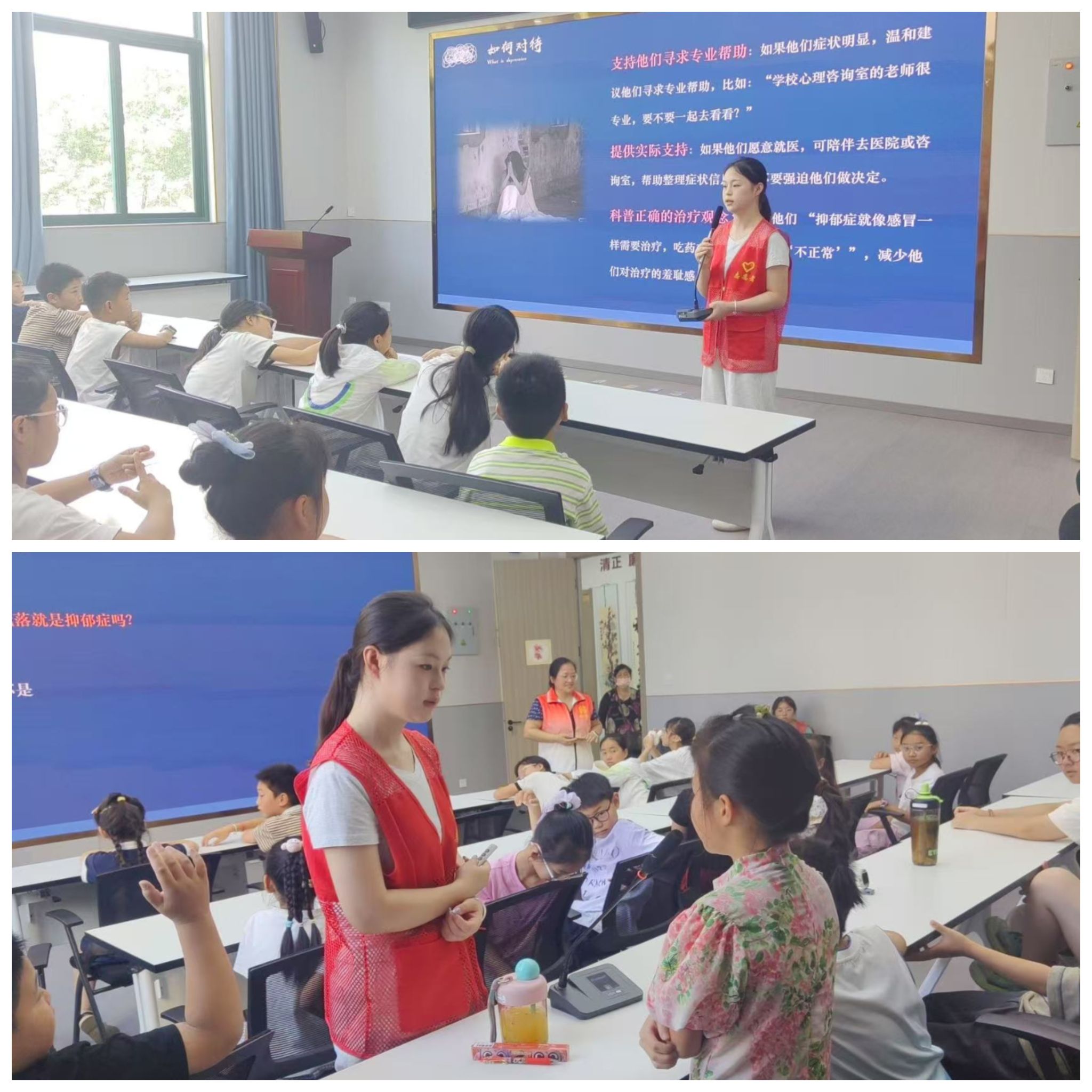 破认知壁垒,童趣科普巧解“情绪感冒”。7月1日,实践队首场活动聚焦儿童抑郁症认知启蒙。队员们通过讲述“情绪如天气般自然变化”的生动故事,引导孩子们理解抑郁症并非洪水猛兽,而是需要关怀的“情绪感冒”。精心设计的“情绪猜猜猜”“心灵拼图”等互动游戏,让孩子们在表演表情、竞猜词汇的欢声笑语中,悄然提升情绪识别力与共情力。“原来不开心时有这么多好办法!我要做自己情绪的小主人!”活动在孩子们兴奋的感悟中落幕,家长亦盛赞其“寓教于乐”。