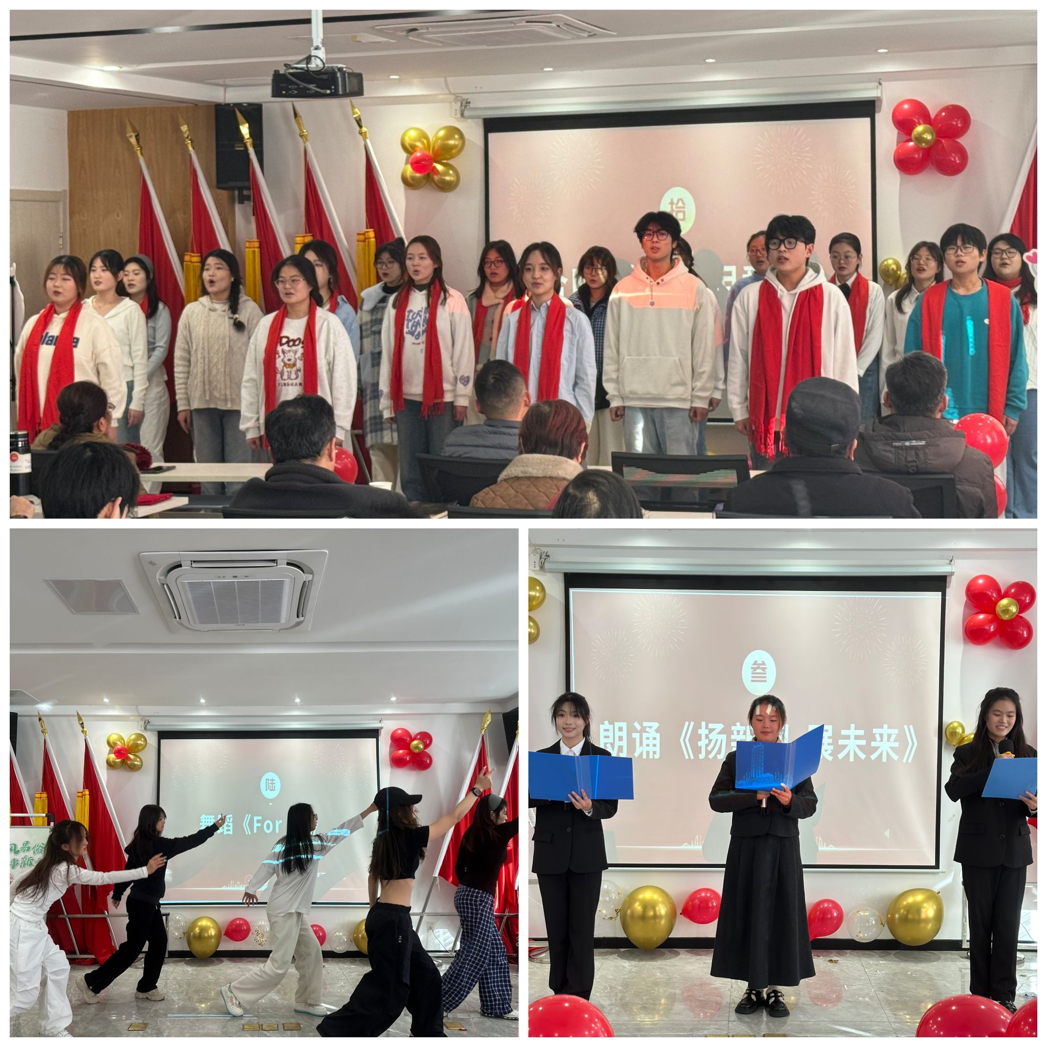 为营造欢乐喜庆的节日氛围,增进彼此情感交流,太阳集团tyc151cc文艺队特别带来了舞蹈《For ya》和大合唱《相亲相爱》,给观众带来视听享受,并朗诵了《扬新风 展未来》,开启新年的美好序章。